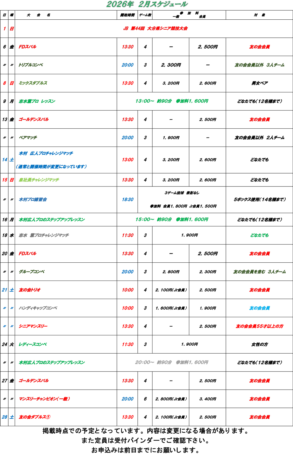 友の会会員・ロッカーともに3月末までに更新をお願い致します。