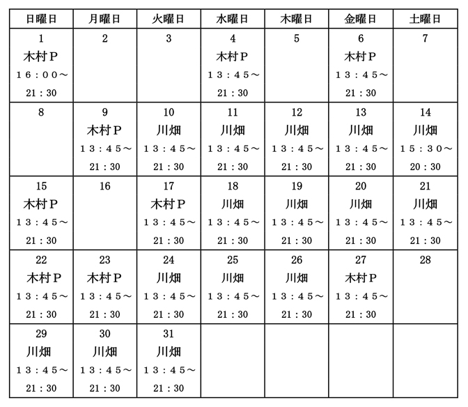 今月の担当者
