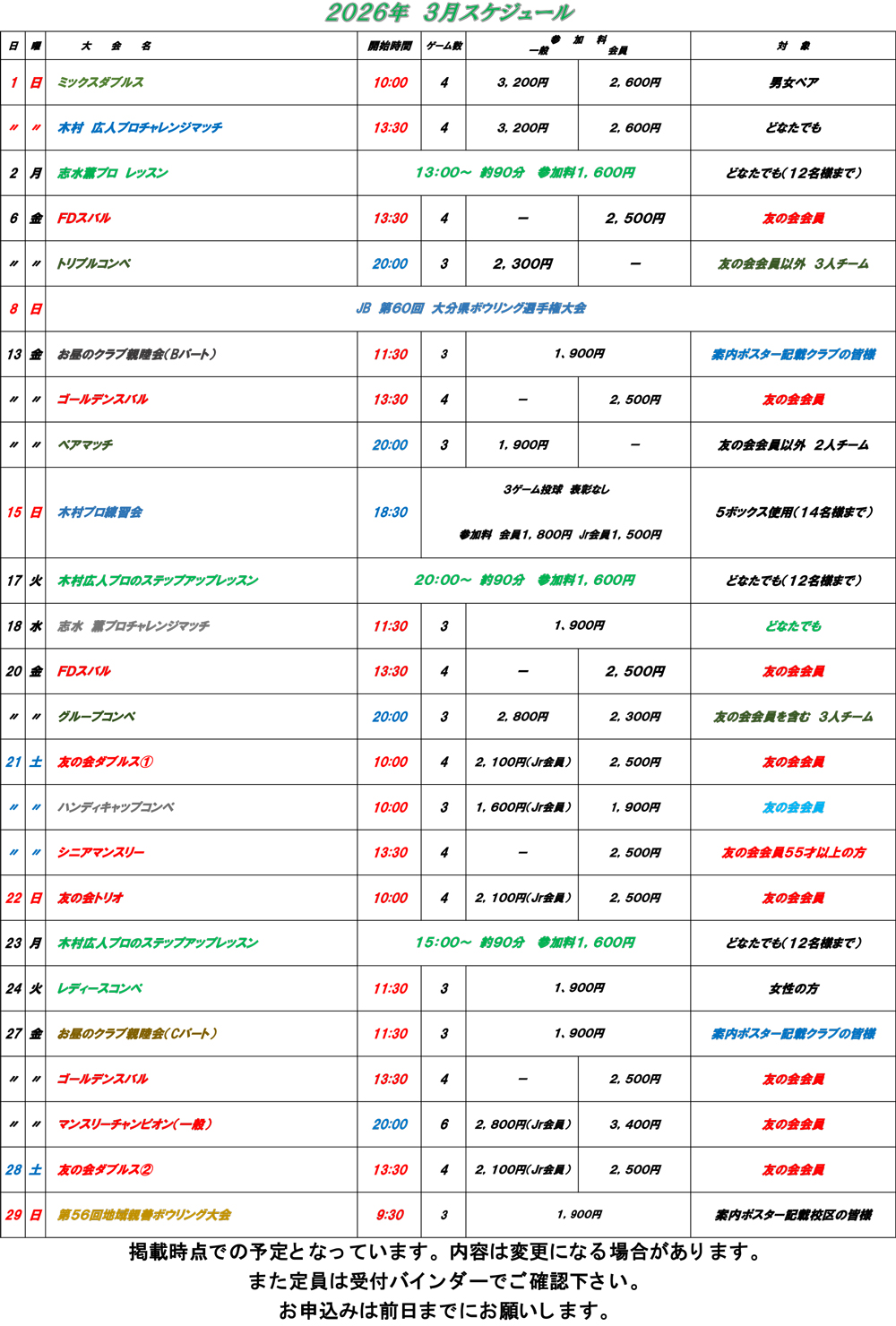 友の会会員・ロッカーともに3月末までに更新をお願い致します。